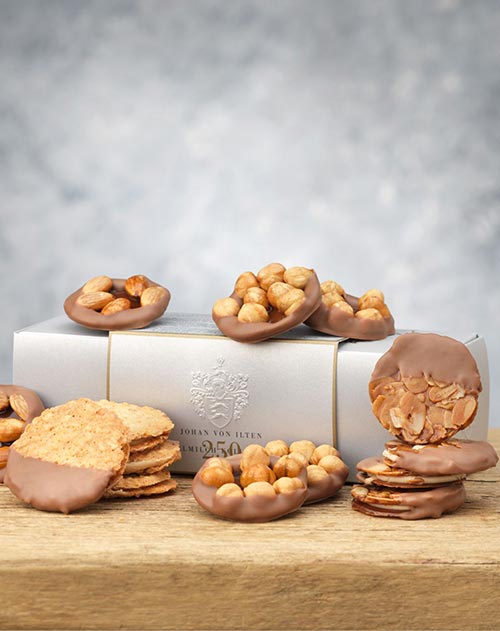 Jeweils 4 Gebäckstücke pro Sorte finden sich in dieser edlen Kollektion wieder. Für alle, die das Feingebäck aus Hannover kennenlernen möchten oder für GenießerInnen, die sich nicht für eine Sorte entscheiden können. Und das ganze in einer schöne und edle Verpackung, perfekt um einem lieben Menschen eine Freude zu bereiten.