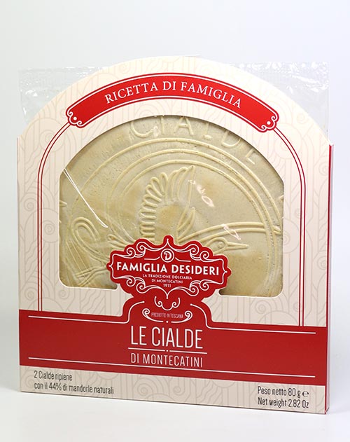 Familie Desideri bietet ihre knusprigen Mandelwaffeln in drei verschiedenen Größen und Formen an. Der Durchmesser von diesen Waffeln ist ca. 16 cm.